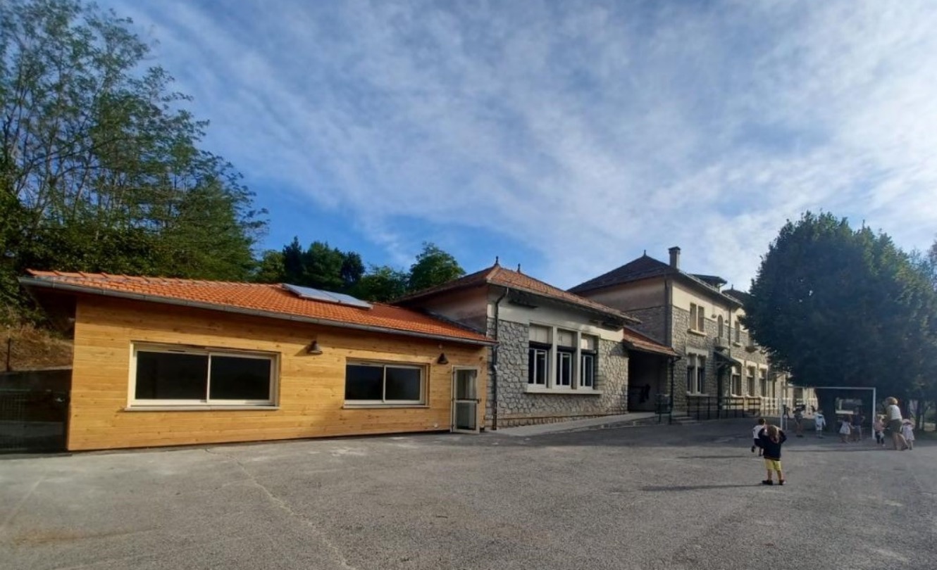 Dans le cadre de France Relance, des travaux d’isolation ont été entrepris durant l’été 2021 et 2022. Tous les murs de classes donnant sur l’extérieur on été isolés par l’intérieur pour un gain de confort et des économies d’énergie. Les systèmes de chauffage ont été remplacés à l’été 2022 par des pompes à chaleur et seront réversibles. Les plafonds des classes seront isolés à cette occasion.
